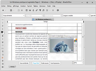 BlueGriffon est un logiciel libre d'édition de pages Web donc un éditeur HTML qui permet de faire à peu près la même chose que Microsoft Expression Web (onglets page Web et code source) mais qui avait (site fermé) quelques limitations dans sa version gratuite (Responsive Design et Epub). Ceci étant il est un peu plus récent que le logiciel de Microsoft puisque sa dernière mise à jour date de 2019. A noter toutefois un petit défaut pour l’onglet « code source » où il faut faire « Edition copier » et « Edition coller » pour copier et coller des éléments, le clic droit ne fonctionnant pas. |