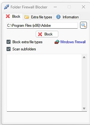 Pour diverses raisons, par exemple parce qu’il s’agit d’un logiciel intrusif diffusant des publicités, parce que vous ne souhaitez pas faire les mises à jour ou parce que l’application est peu sûre, vous pouvez souhaiter bloquer l’accès de certains logiciels à Internet quand ils n’ont pas besoin d’être connectés pour fonctionner. Folder Firewall Blocker (Blocage d'un dossier par le pare-feu) vous permettra d’effectuer cette opération et même souvent mieux qu’avec votre pare-feu habituel car ce petit logiciel sans installation ne bloque pas seulement les fichiers .EXE mais aussi tous les autres susceptibles de se connecter (cocher « Block extra files types »). Il vous suffira seulement de sélectionner le dossier contenant le logiciel choisi ainsi que les sous dossiers (en cochant « scan subfolders »). Et vous pourrez même vérifier que la règle a bien été ajoutée en cliquant sur le lien « Windows firewall » qui ouvrira le pare-feu Windows où il vous sera bien sûr possible de la supprimer si vous vous êtes trompé ou si vous avez changé d’avis. |