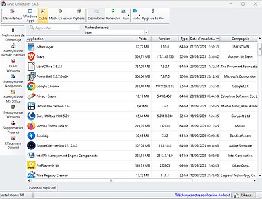 Si vous désinstallez souvent des programmes simplement avec l’outil Windows prévu pour cela, le temps passant vous risquez d’avoir un nombre considérable de traces de logiciels car ceux-ci n’auront pas été désinstallés entièrement ce qui risque d’impacter fortement le bon fonctionnement de Windows. Pour remédier à ceci vous pouvez utiliser Revo Uninstaller qui scanne et supprime les éléments restants après la désinstallation. Il n’est pas forcément utile de cocher l’option « Créer un point de restauration système avant désinstallation » mais choisissez de préférence l’option « Avancé » pour le scan. Logiciel très efficace, le seul défaut de la version gratuite étant de ne pas créer de sauvegarde du registre donc de ne pas pouvoir le restaurer en cas de gros problème. A faire donc manuellement avec « Regedit » HKEY_LOCAL_MACHINE\SOFTWARE\nom du logiciel clic droit « Exporter » avant la désinstallation. |